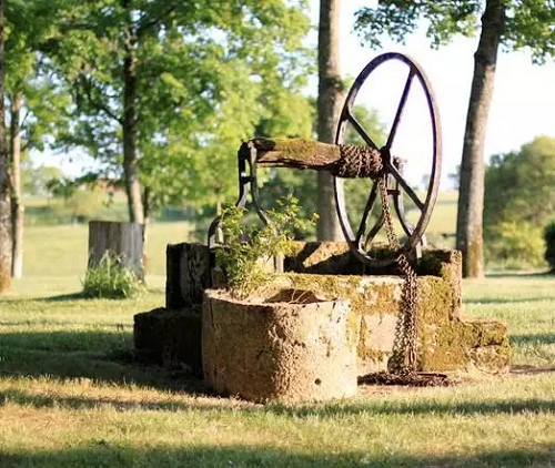 水車、石墨、古井、古樹、棚架等,經(jīng)過簡單的藝術(shù)加工,比如擺放形式、擺放位置等,就可以體現(xiàn)出濃郁的鄉(xiāng)土氣息。